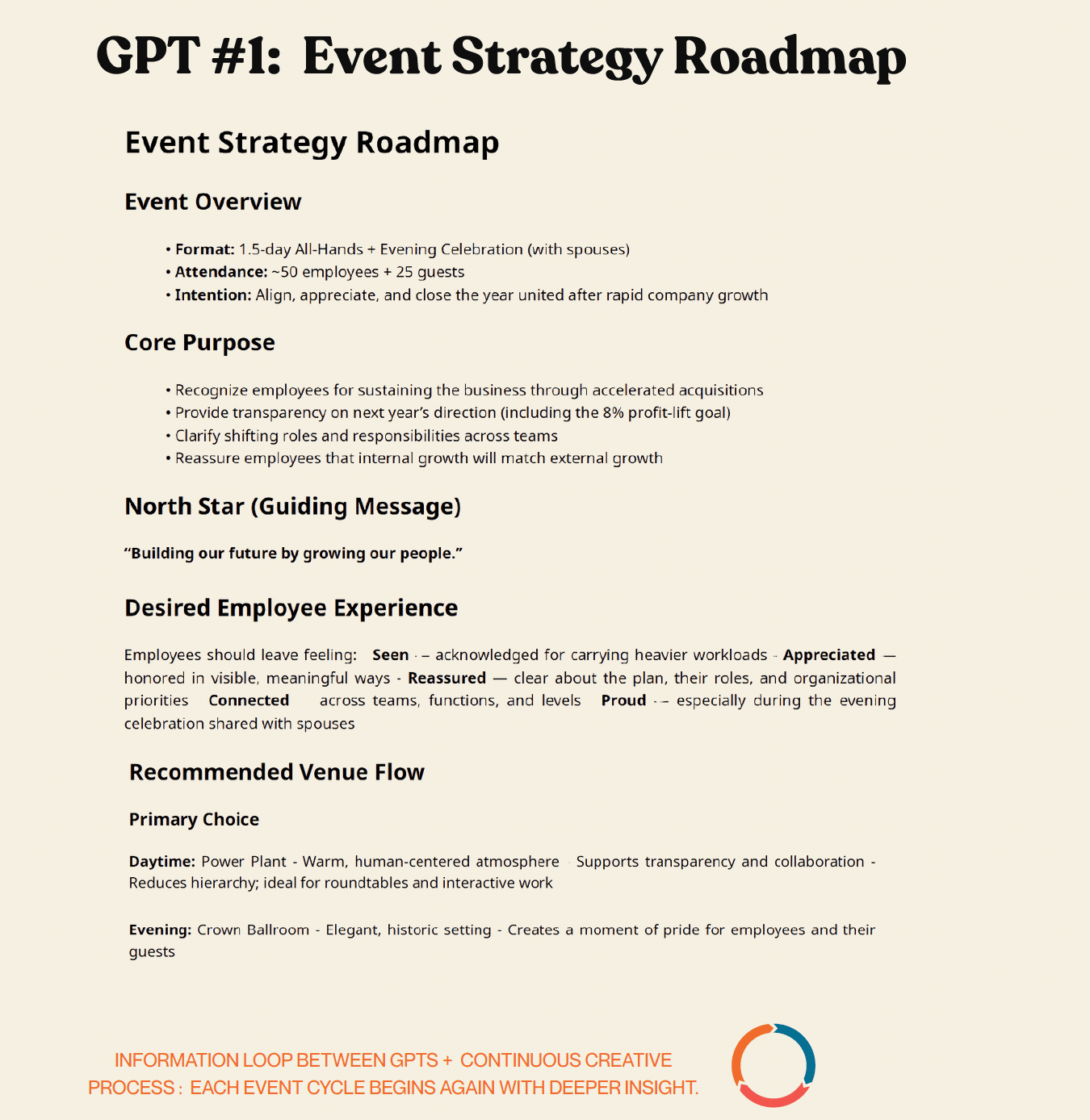 Event Strategy GPS: Find your โwhyโ and clarify purpose. It guides you through questions to help you establish an experience brief/roadmap that you can use to strategically rally people around the event.