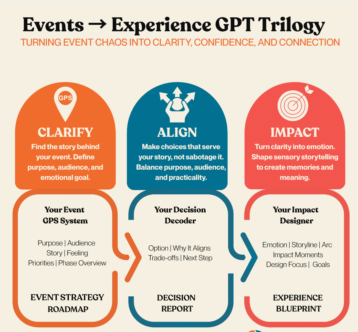 THE GIFT: So I built a trilogy of AI-powered guides that help you think like a strategist, design like a storyteller, and feel empowered as a planner/producer.